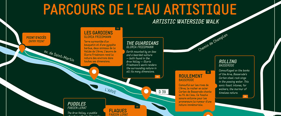 One exemple: Arve artistique - la route de la sculpture. An art in situ call for participants and artwork installation in Passy, France.